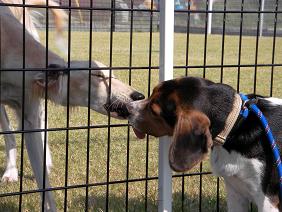 フェンス越しに久しぶりの対面を果たしたお二人さん