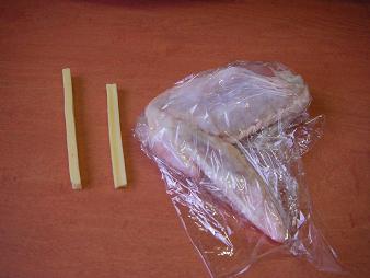 うらら&そらが、ランで売ってるおやつのスモークチーズ半分づつ(オデブの為