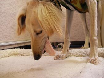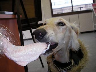 そらたちにはかじらしただけで、あげません、丸呑みしそうなので