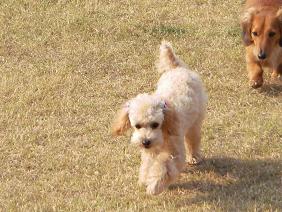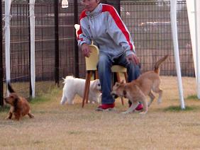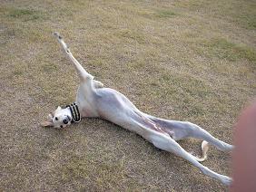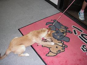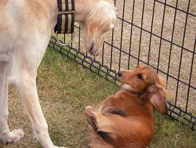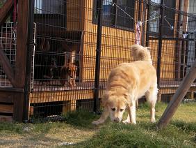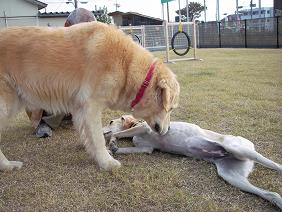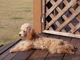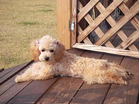 デッキで休憩中のナイトくんに飼い主さんの了承をもらってオヤツをあげたら手まで喰われました