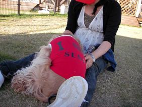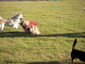 飼い主さんいわく、シャンプー嫌いらしいのに、プールがいたく気に入ったようで、ねねが近づくと来ないで~