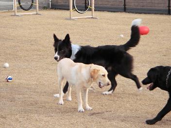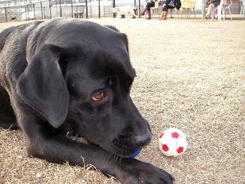 今日も持ってこーいっとボールを投げてもらって遊ぶカン太君