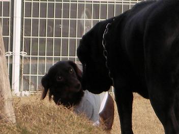 ねねの大好きなかんた君が遊びに来てくれて、駐車場で発見したねね、大興奮で