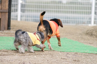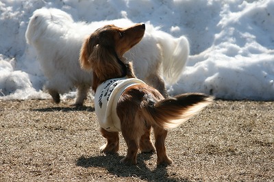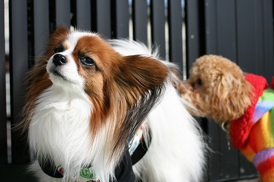 今日のぐりちゃん、なぜかリブ君の後ろにペッタリ