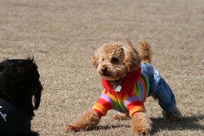 ポテト君は他の子がいないほうがいいのか、みんなが別のエリアに行くとマッシュちゃんと走って遊んでました