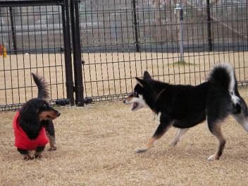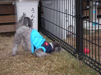 フェンス越しにこんにちはするぐりちゃんと日向ちゃん