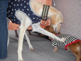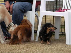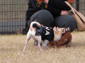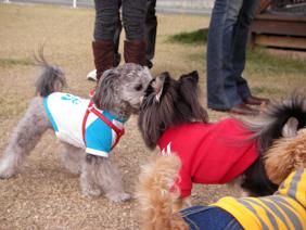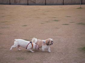 飼い主さんがPCでドッグフォトの写真を見られているときに、足元でクッキー君はねねにパンチされてました・・・