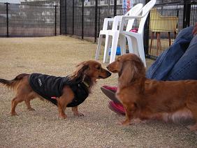 銀ちゃん相手に、フェンス越しのワンワン対決