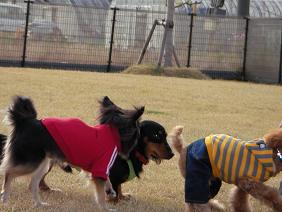 平日の他のワンちゃんがいないときでも、うららたちがいるだけで遊べなかったシェヴァ君が、かなりの進歩です
