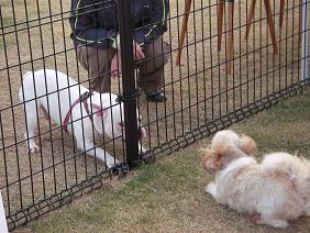 さくらちゃんとミキちゃん、フェンス越しの対面
