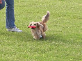 空中キャッチはむずかしいけど、落ちてもくわえてちゃんと持ってきてましたよ