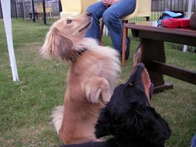 オヤツをくれる、エリック君の飼い主さんにみんながストーカー