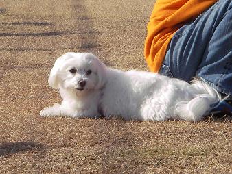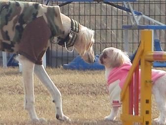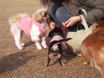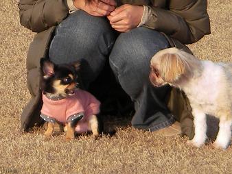一方、小型犬のほうはうららちゃんの飼い主さんにペッタリしてるアルムちゃんが