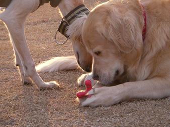 うそです、必死にボールをハムハム中