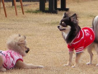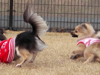ココアちゃんはあんずちゃんにも遊んで欲しそうだったけど、あんちゃん、あっち行って!!っと追い払う