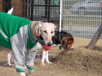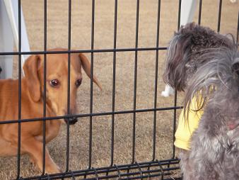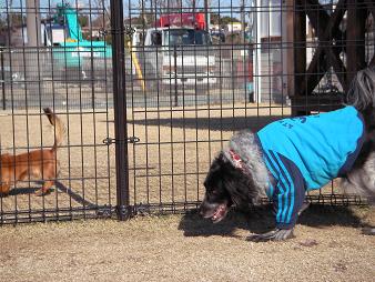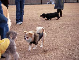 他の子が苦手みたいで、フェンス越しにわんわん言ってたけど、みんなと一緒の方にすんなり来てました