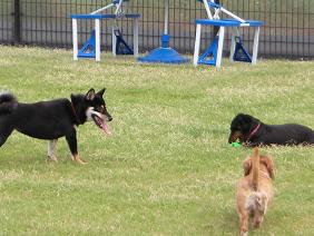 なんせ今日が初!他のわんちゃんと絡む
