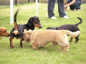 こちらはケンくんをクンクン中のダックスさんたち