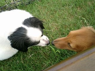 そんなポッポちゃん、ダックスのウーロンちゃんのおしりを密かにくんくんしてました