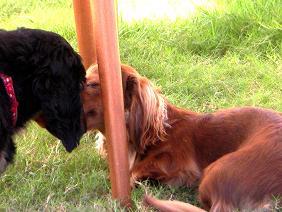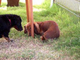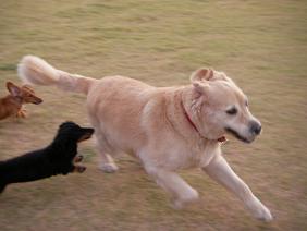 なぜかうらら&そらは毎回ナイト君に吠えて走っていきます