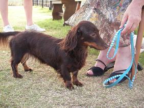 リードを嗅ぐルイちゃん