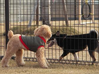 フェンス越しに一緒に走ってるのは