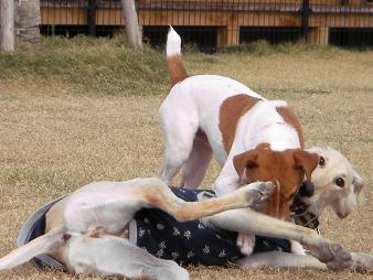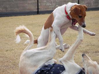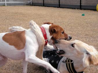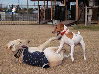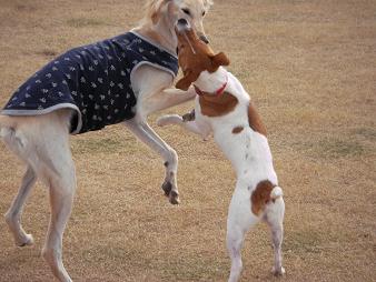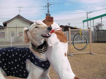 プーちゃんに威張ってみた瞬間のさくらちゃん