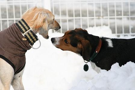19日(火)は曇りで昨日の雪が残ってたので雪かきをしました~ そんななか遊びに来てくれたのはビーチャン そして今日もビーチャンの飼主さんプレゼンツでどうぞ 仲良しな2匹です 立ち技はねね優位、寝技は断然ビーチャン優位で見てておもしろい2匹なのです ビーチャン遊びに来てくれてありがとうございました また遊びに来てくださいね そして写真、ありがとうございました