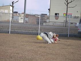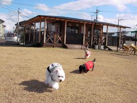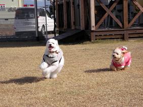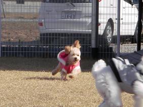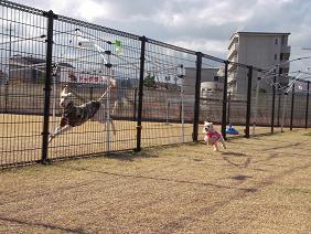 ココタン、ランに入ってすぐにねねとフェンス越し走り