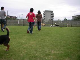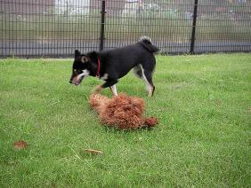 フェンス越しにラブ君とワンワン言い合ってたポンくん、とうとうみんなのいるフリースペースに入れられちゃいました