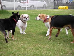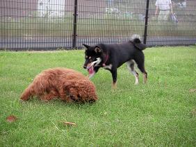 いつもは他のワンちゃんと絡まないのに、今日は積極的