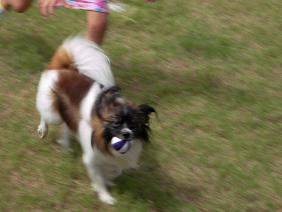 ラブ君の口の中には、ちゃっかりボールがおさまってます