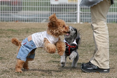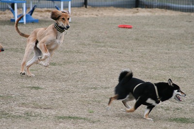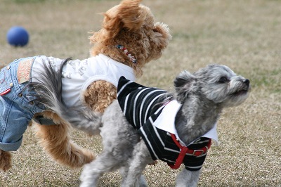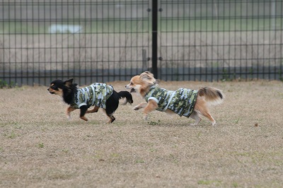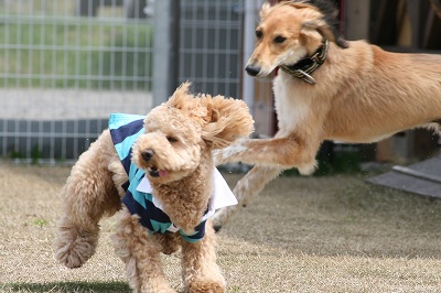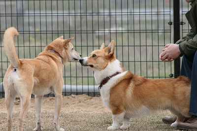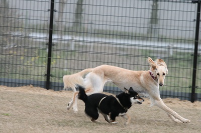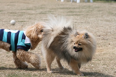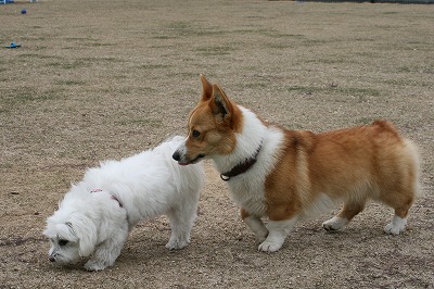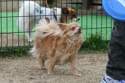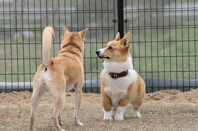 きくちゃんとさくらちゃん、いつもは小型犬スペースにいる事が大いけど、今日は大きい子達のほうへ