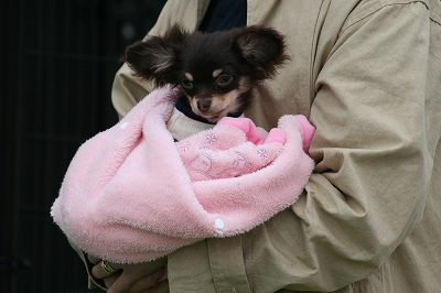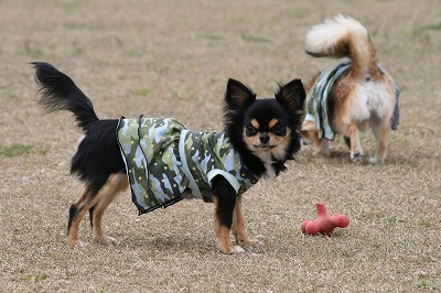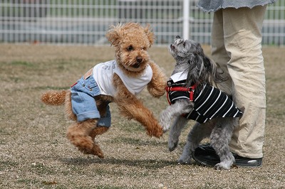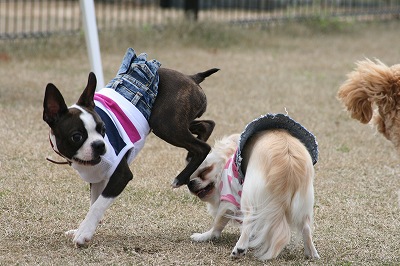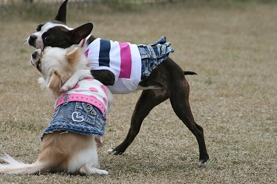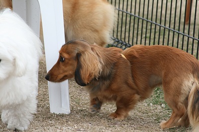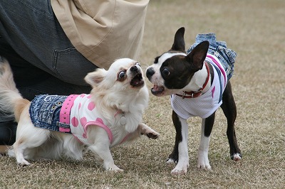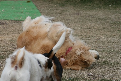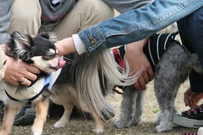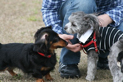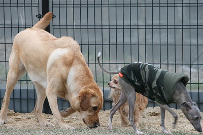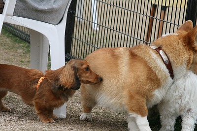 ラビちゃん、小型犬のほうに行きたいのか、一生懸命ワンワン